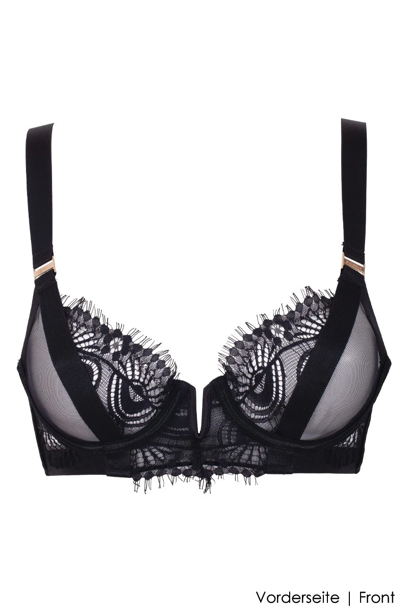 - Art Déco inspired Wired Bra made of black „Eyelash“ lace and tulle