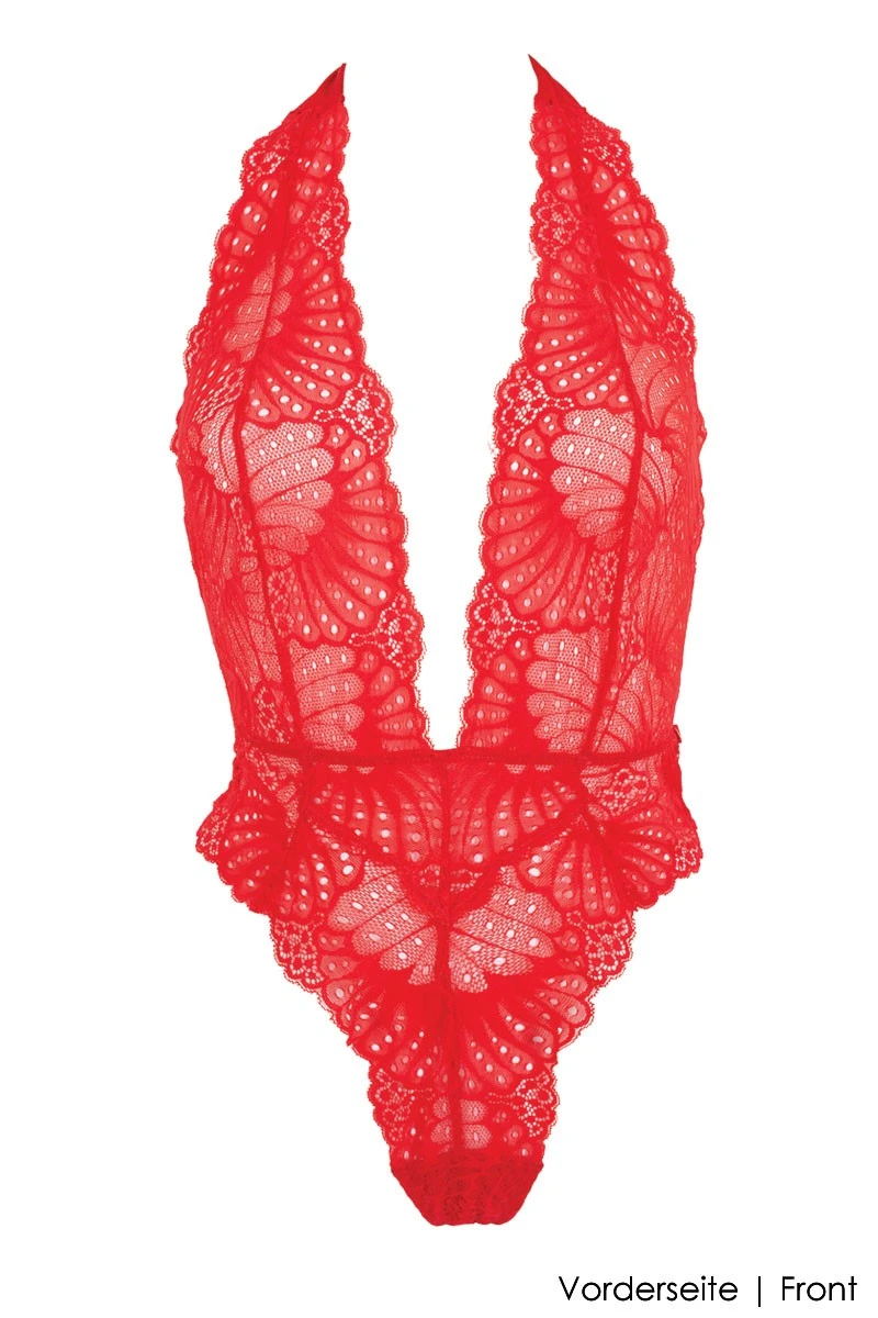 Glamorous and dazzling, the deep V design of this Neckholder Playsuit is as charming as it is sexy. The see-through floral fabric is stretchy and provides – in combination with the fully adjustable straps in the lower back – a fantastic fit. Enjoy the shine of the golden hardware details and the allure of the G-String design. Dare to be and add this lovely Bodysuit to your lingerie repertoire…you and your partner will love it!