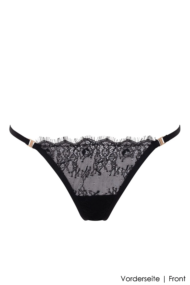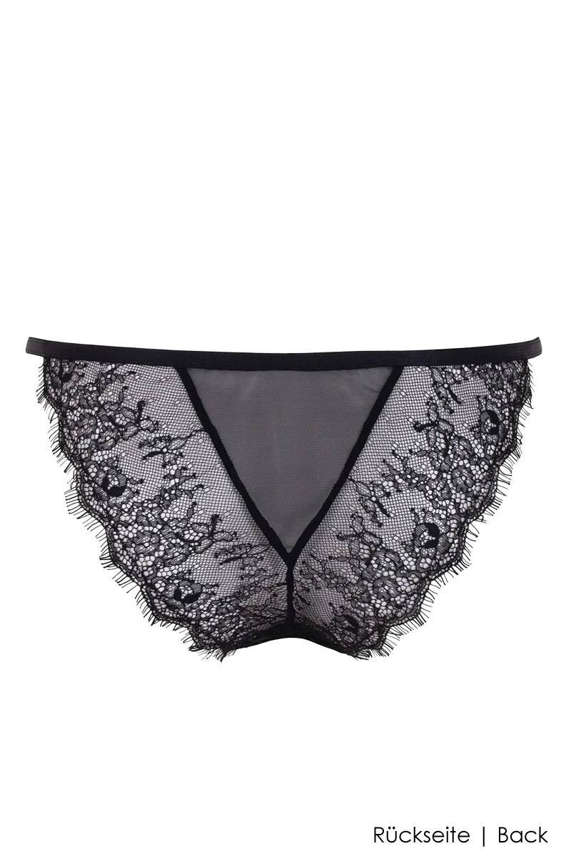 Embrace the dazzling beauty of the Grace Brazilian Brief which can be dressed as fashion and seductive erotic lingerie alike. Thanks to the vertical center seam in the back, the bum hugging cut is showcasing your curvy nature in a beautiful way. The see-through nature of the embroidered tulle with eyelash edges and shiny golden hardware details are adding to the allure of the design. Browse the „Complete the Look“ Slider above and find the matching Bra, Soft-Torsolette etc. for a lingerie look that is ready to conquer the world by storm!
