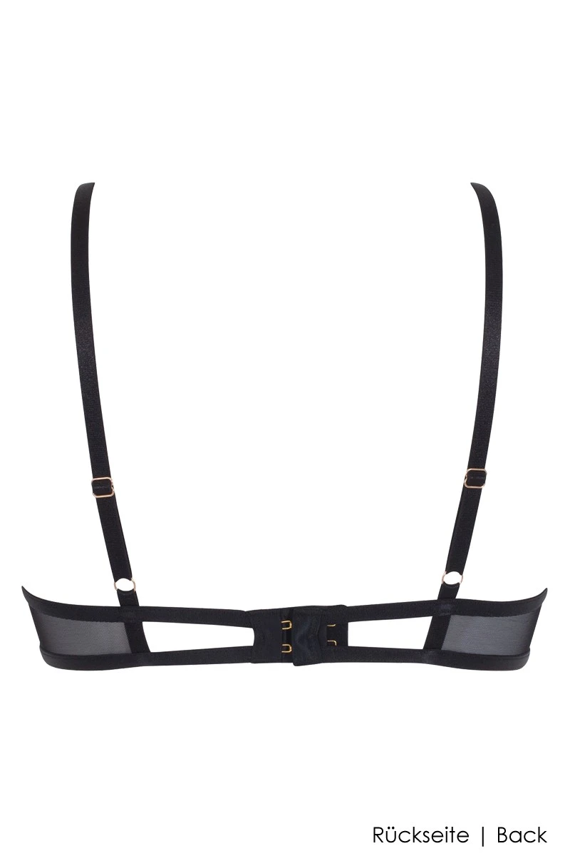 Make your days more special rocking this unpadded Wired Bra made of embroidered see-through tulle featuring decorative „Eyelash“ edges. Imagine this dazzling style underneath a sophisticated blouse or dress. And when the situation calls for it, you will be perfectly ready to engage with your partner knowing that you look your very best. The light cups create a naturally beautiful decolleté while providing a great level of wearing comfort. Get the most out of this style by pairing it with the matching Grace bottoms for an immersive lingerie experience for you and your partner.