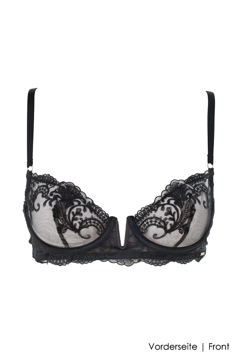 Treat yourself to this light and lovely wired bra, that is a bestseller for many good reasons. Made of florally embroidered see-through microtulle, the lingerie of the Marseille line is especially alluring and a joy to wear. Especially in the combination with the matching thong, brazilian brief and suspender belt, you can unleash the many talents of this spectacular bra. Dressed as a part of an empowering business look, at home on the couch with dreamy knitwear or as a mind blowing erotic lingerie ensemble, it is the perfect choice for modern women that want to embrace their femininity.