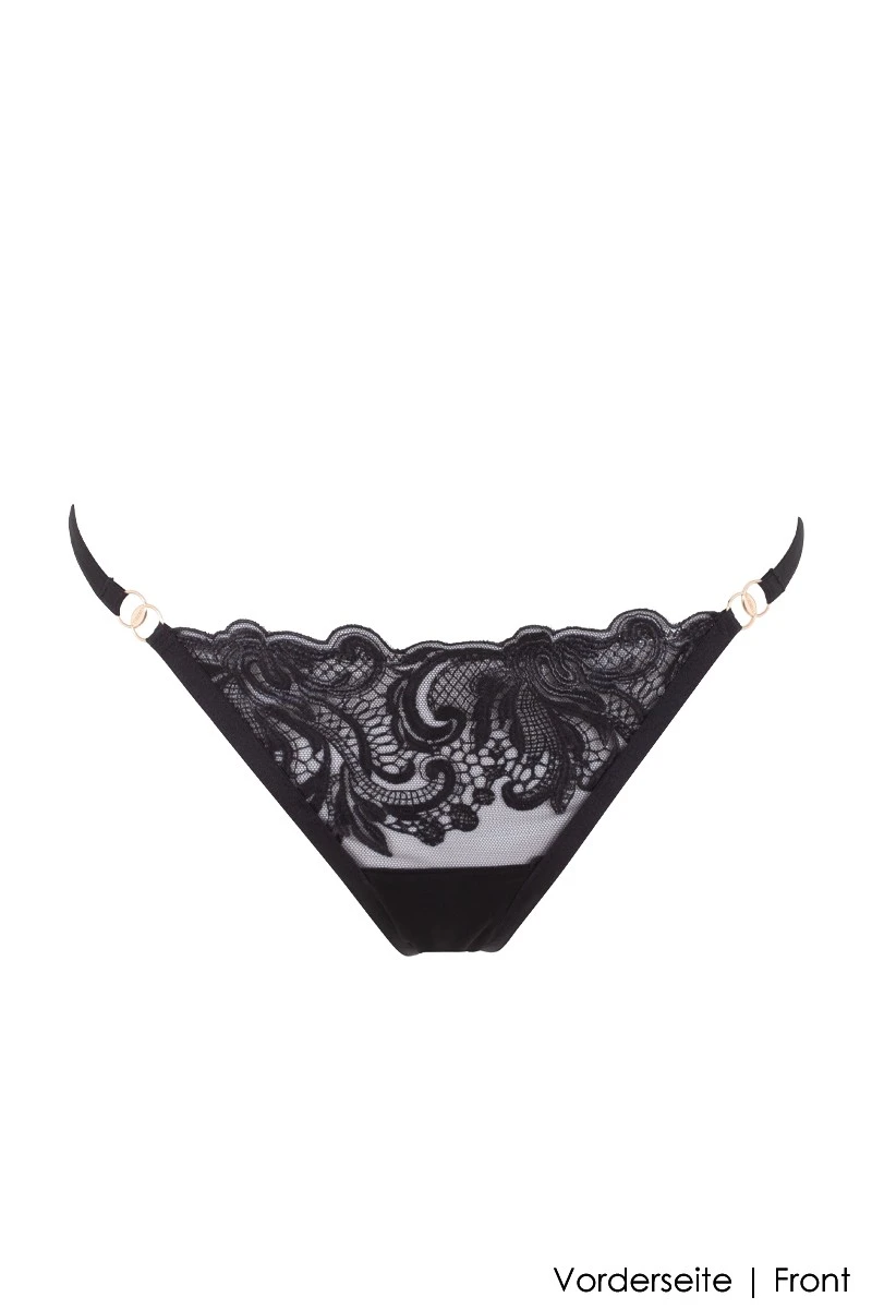 Celebrate life and have fun wearing this one of a kind Brazilian Brief featuring a bum hugging fit! Slip into this highlight of the season and enjoy the lovely floral embroideries on see-through tulle as well as the golden hardware details that make everything come together so nicely. Given its light and of an easy fit, you will love to wear the brief as daily lingerie as well as for special occasions. You are as excited about the design as we are?!… then treat yourself by using the „Complete the Look“ slider above and have fun creating the set of your choice.
