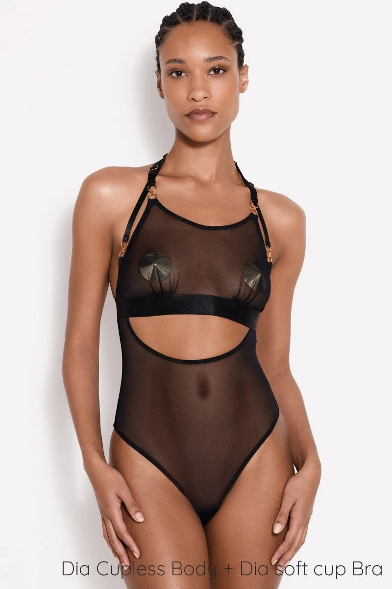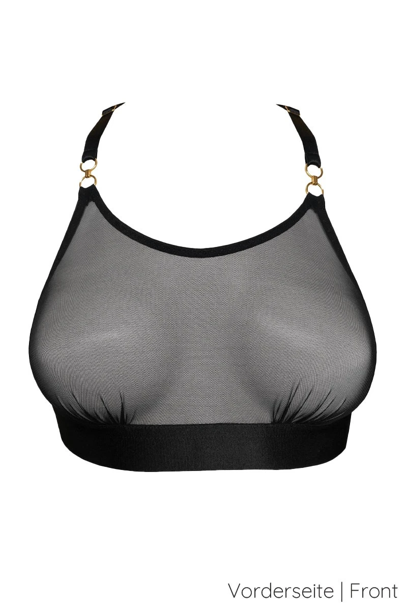 Embrace your sexyness and dare to layer this see-through Soft Cup Mesh Bra on top of your favorite Open Bra and shiny Nipplets for a captivating and dressy look. Soft, comfy, elegant and precious, you will love the contrast of the deep black satin bands and the 24K gold plated hardware details. Let this unique styling light up your boudoir or let it flash out from underneath your Blazer Jacket when you are having a drink downtown. You and your partner will love the experience!