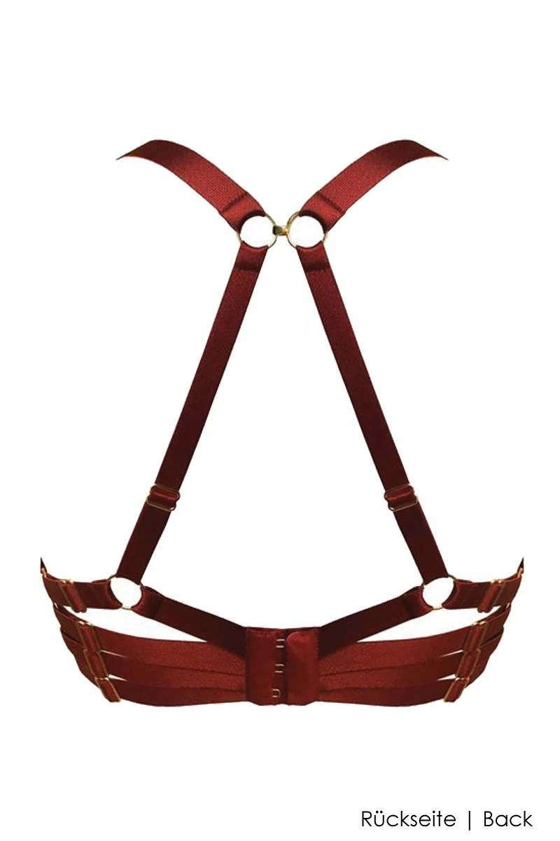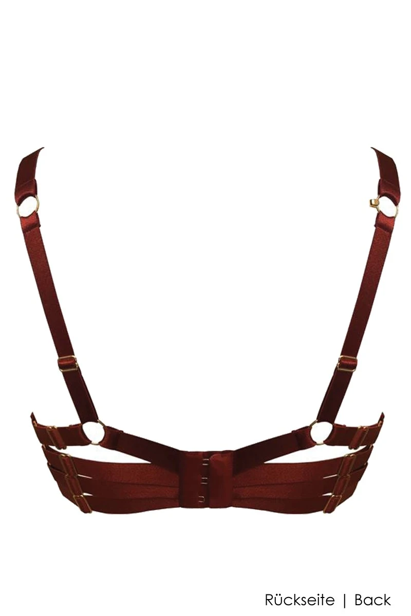 The Bordelle Signature Line Push up Bra is made of luxurious silk satin and shapes a full and beautiful bust thanks to the integrated push up polsters and wires. In addition to the shiny silk, a „strappy“ bondage design in the back takes the allure of the bra to the next level. The elastic bands are easily adjustable and feature 24K gold plated hardware details, highlighting the outstanding quality of the design. The shoulderstraps can be used in the traditional way or in a gorgoeus „X“ shape (see product images). Treat yourself and your partner to this fantastic lingerie experience and enjoy every second!