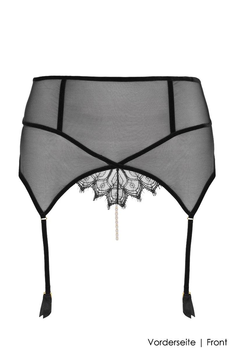 - Multifunctional 4-Strap Garter belt made of finest Leavers Lace, elastic Tulle and elastic velvet bands