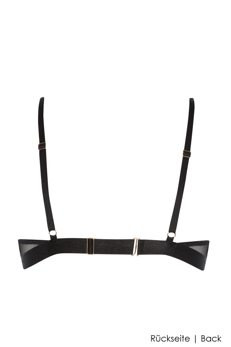 Featuring gorgeous rosé-goldenen hardware details and a spectacular crossed strap design, the sexy transparent Bra of the Vienna Line is a highlight for modern women. Versatile in its potential use, you will fall in love with the lovely embroidered tulle, shiny satin and perfect fit of the triangle. Fully adjustable in the back, this bra is a joy to wear. Dress the Vienna Crossed Bra with one of the matching pearl thong bottoms if you want to enjoy the full BRACLI lingerie experience!