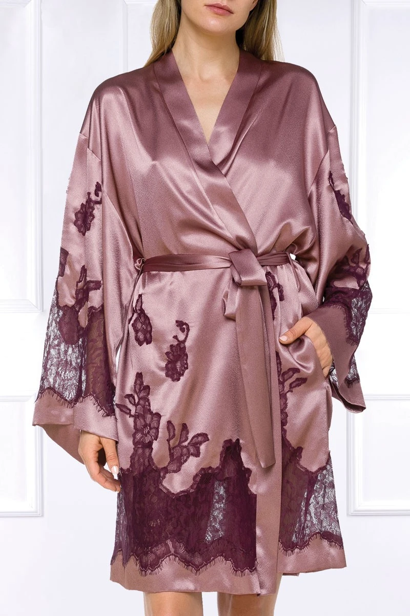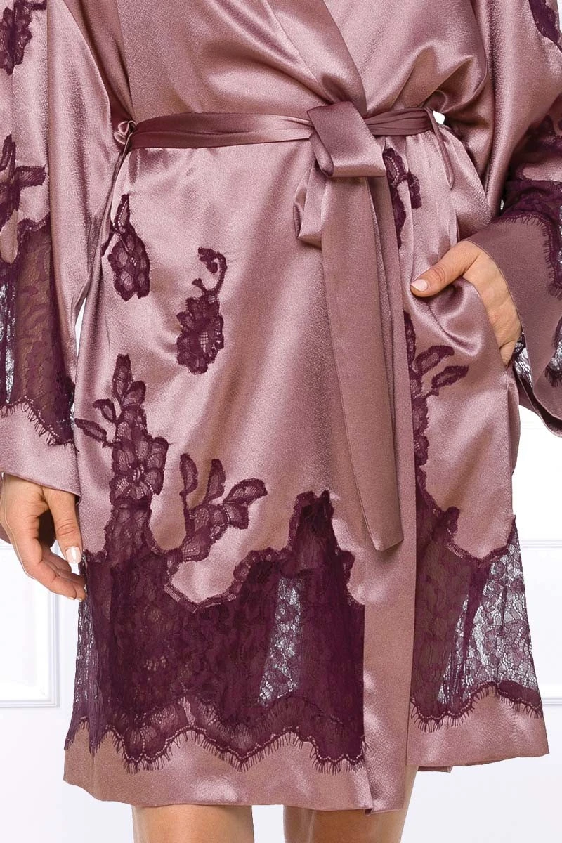 The shiny Ayana Satin Kimono with its beautiful lace applications and inserts is a glamorous highlight for any boudoir. Enjoy it with the matching powder coloured nightwear, your favorite erotic-lingerie or just on your bare skin for a maximum in pleasure and style. Tie the Kimono with the matching satin waistbelt and enjoy it at any time of the day. This high quality Kimono is 100% Made in the EU and shipped in a gorgeous Coemi box.