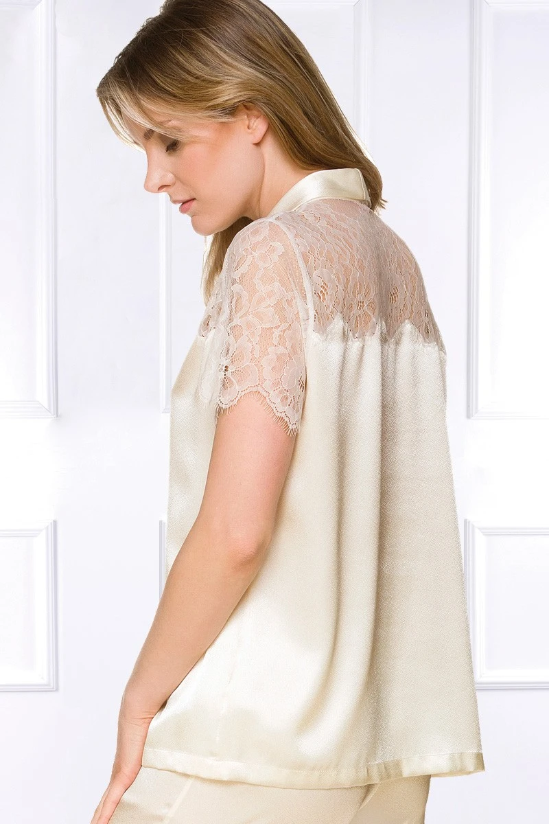 - Luxurious Satin Pajama Set with short sleeves made of finest lace