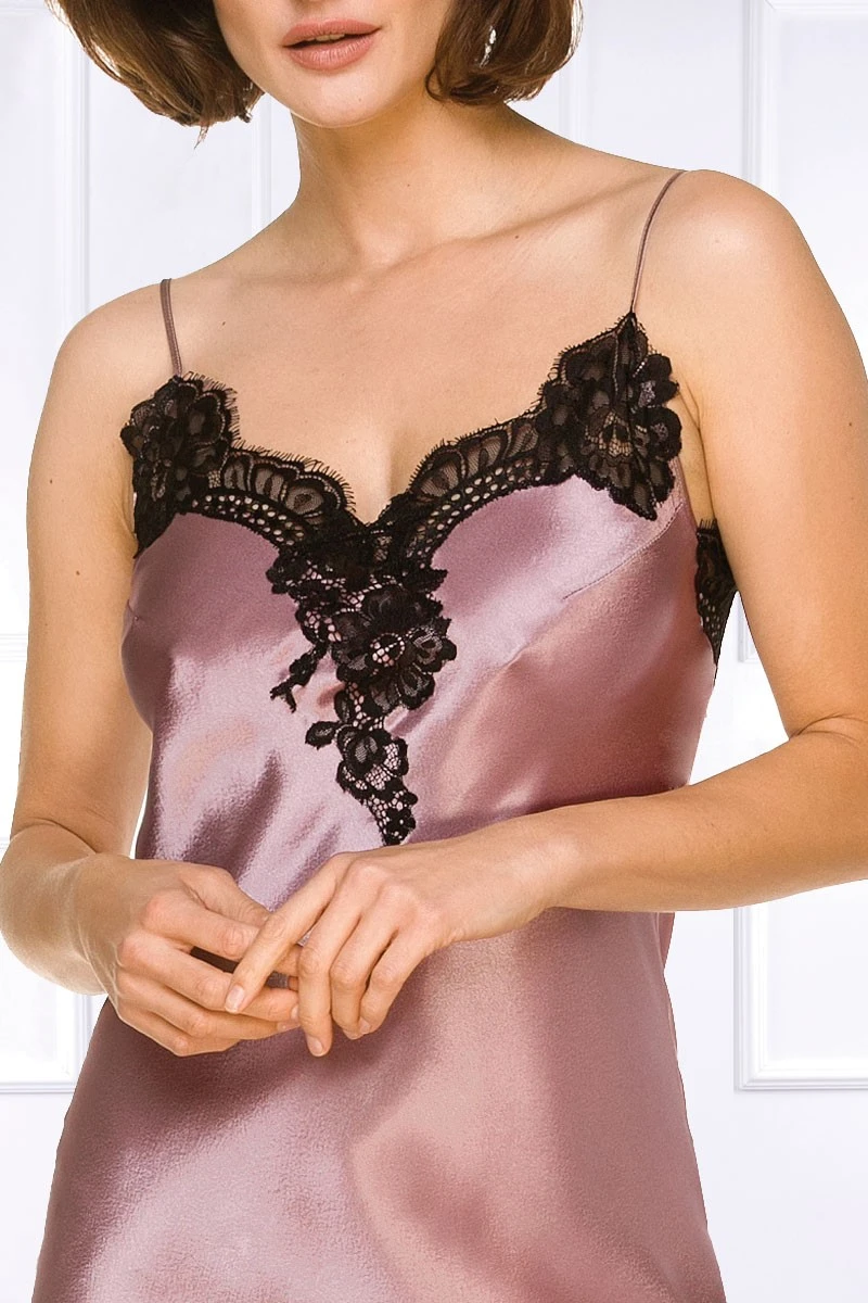 - With artfully inserted floral lace along the décolleté, hemline and backside