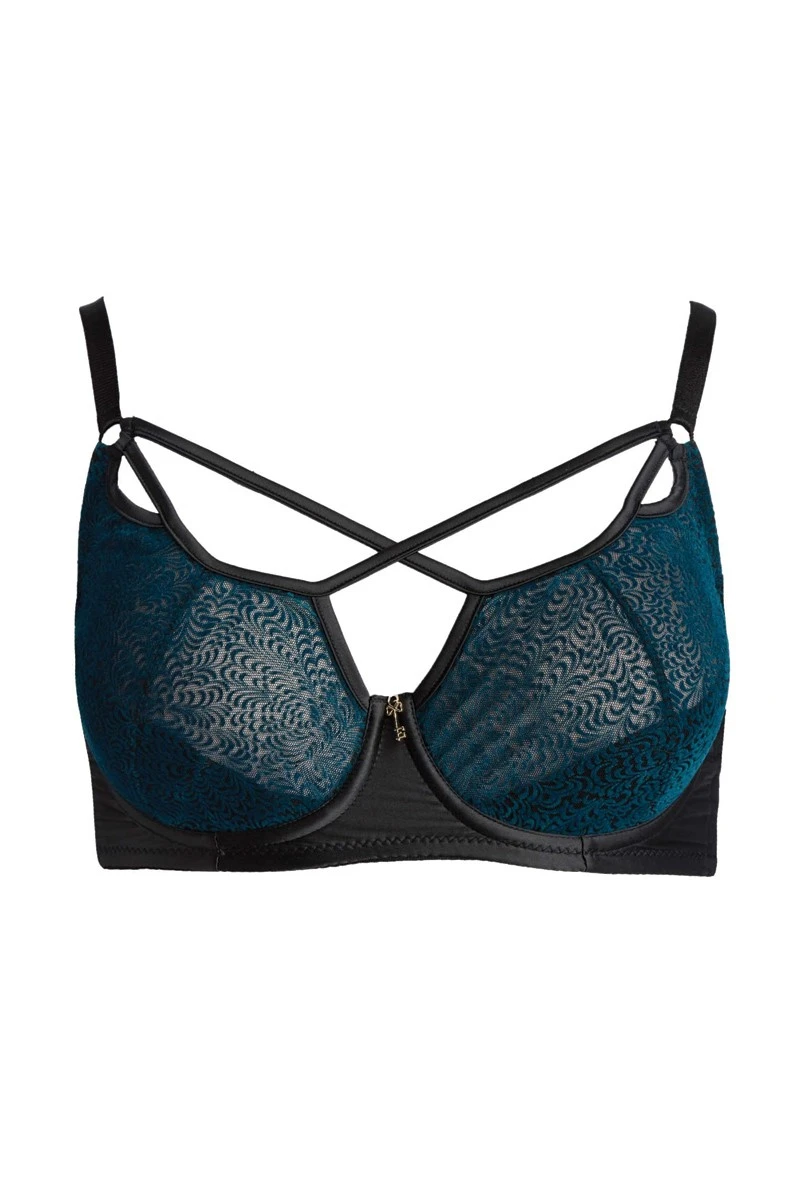 The Amaya Wired Bra is made of high quality microtulle with a decorative floral flocking and shiny satin. The strappy look and velvety touch of the cross-fashion Bra is a real eyecatcher. Elegant and fresh in its design, the bra is of a great manufacturing quality and fit. The emerald-green flocking is a gorgeous contrast to the shiny satin of the bra. Dressed with your favorite blouse or the matching Amaya Kimono and Bottom, with this fine piece of lingerie you will feel and look amazing!