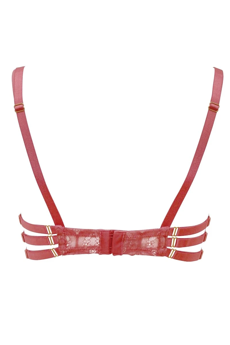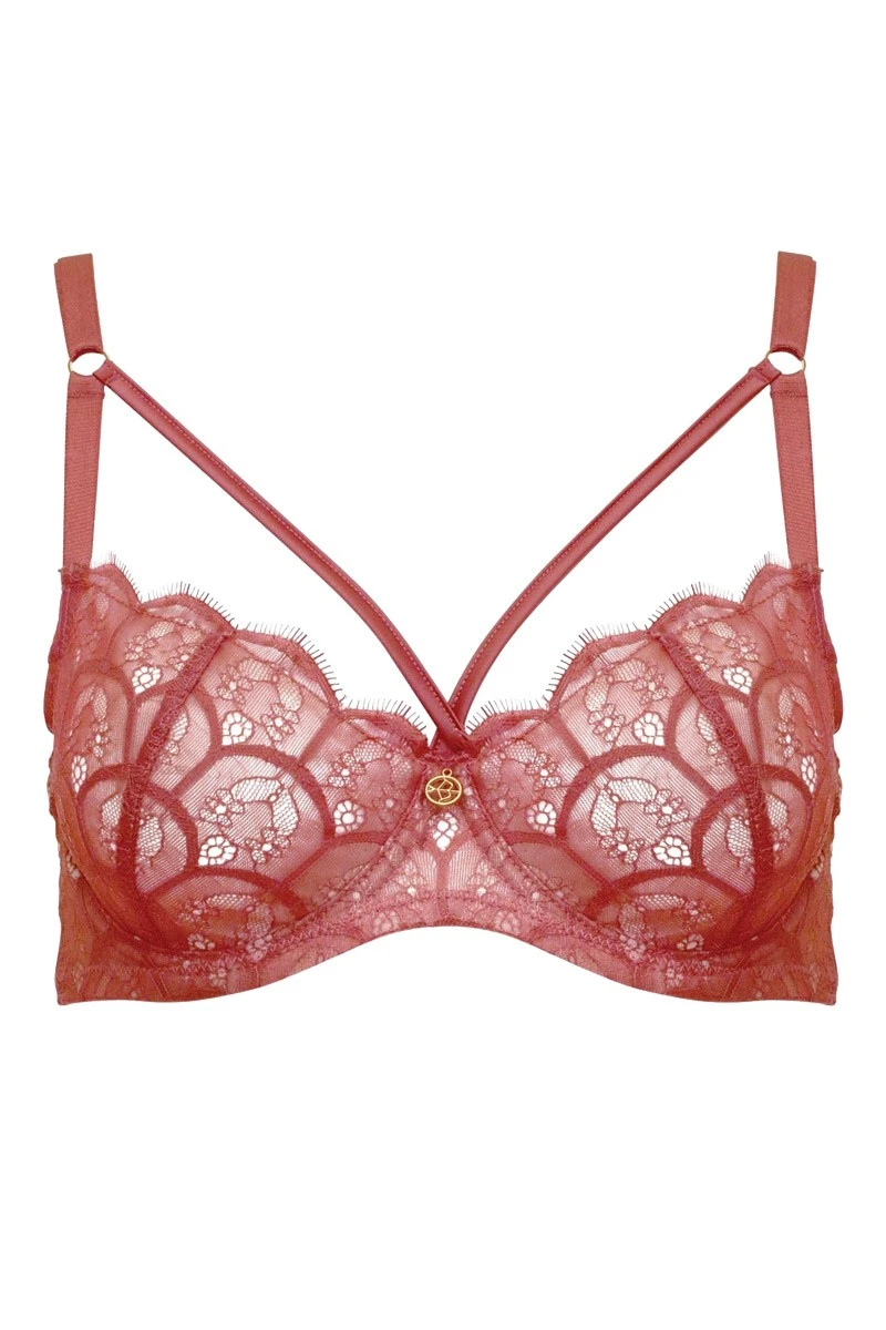 The sexy transparent Diana Lace Bra with integrated wires is light and absolutely wonderful to wear! The colour „Rose Berry“ looks gorgeous with any kind of skintone and works with many of your favourite fashion outfits. The precious „Eyelash“ lace lets your skin breathe and and fits perfectly onto your body. Shiny and decorative satin bands as well as a golden Diamor Hardware piece further enhance the sophisticated look. Wear this elegant piece of lingerie with the matching Diana bottoms for the full design experience. Even though the Diana line looks a bit darker in the pictures, it also fits perfectly to the brighter Josephine line.
