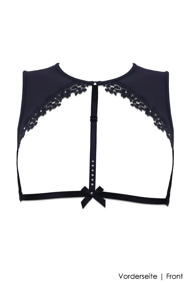 This Epaulettes Body Harness is a one of a kind showstopper that knows perfectly how to frame and highlight your feminine beauty. 100% Handmade in France, the tantalizing design of this luxury harness shows a great attention to detail and is made of finest french lace and high quality lycra. Precious Swarovski crystals and a shiny satin bow had been elegantly placed in the center front. Mix and match this exclusive Harness with the fully modular lingerie of the Borsalino line and enjoy the many ways you can feel and look amazing!