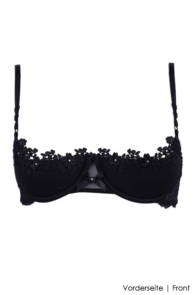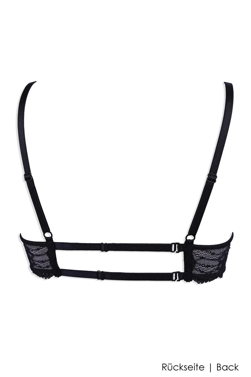 The glamorous Borsalino Shelf Bra is a Open Lingerie highlight 100% Made in France. The french guipure lace on the soft padded half cups had been adorned itself with sparkling Swarovski crystals. This beautiful open bra can be dressed with various other items of the Borsalino line. Match it for example with the Borsalino Collier, the Nipplets, the Bolero Top, the Torsolette and many other items for the most dazzling erotic lingerie experience! Engage in erotic play with your partner and experience the many talents of sophisticated open lingerie for an even more exciting love life!