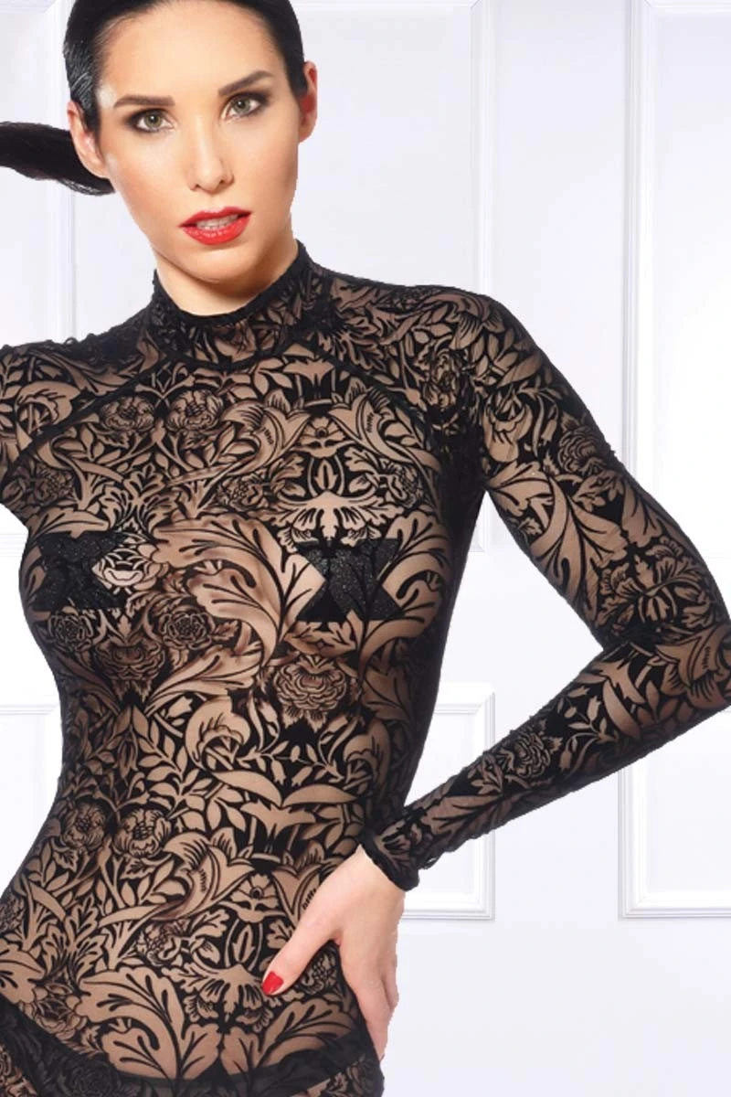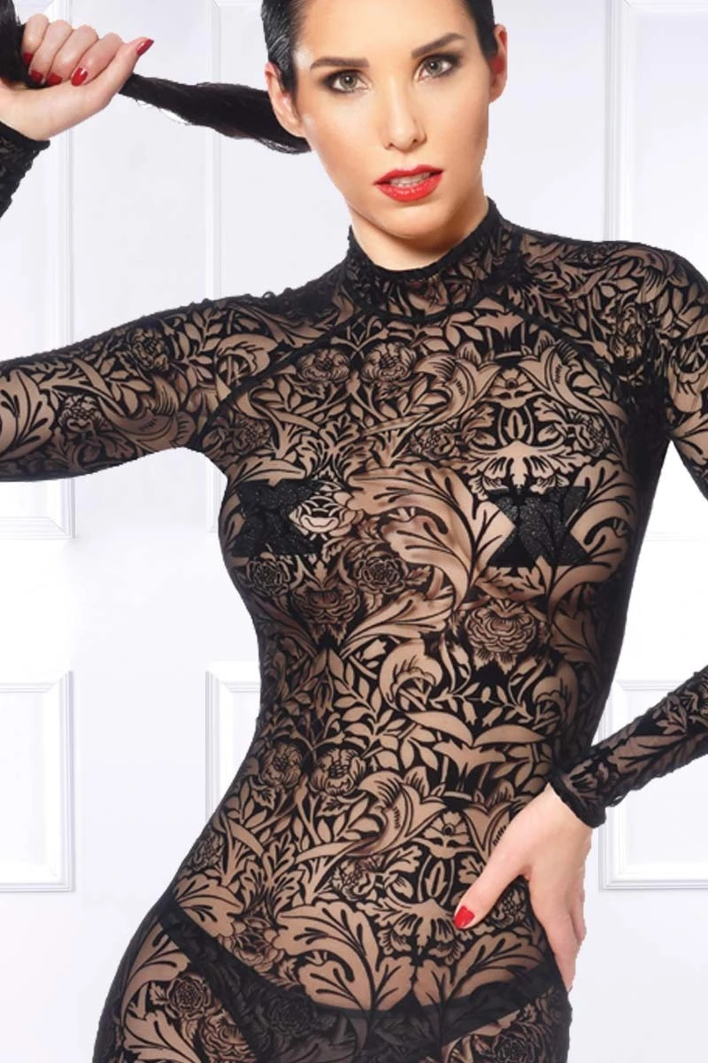 The see-through Maori Mesh Tattoo Dress is quite an experience for everybody involved. Featuring a decorative „Maori“ style velvet tattoo print, you can enjoy the beauty of this unique bodyart without having to actually get a tattoo! Elastic in its fit, the figure hugging Party Dress perfectly adjusts to your curves. Thanks to a the full length zipper in the back, you and your partner will enjoy the pleasure of dressing and un-dressing in style…definitely a sight to remember! Finally we recommend to check out our perfectly matching high end erotic lingerie as well as our exclusive Nipplets in order to crown your stunning look.