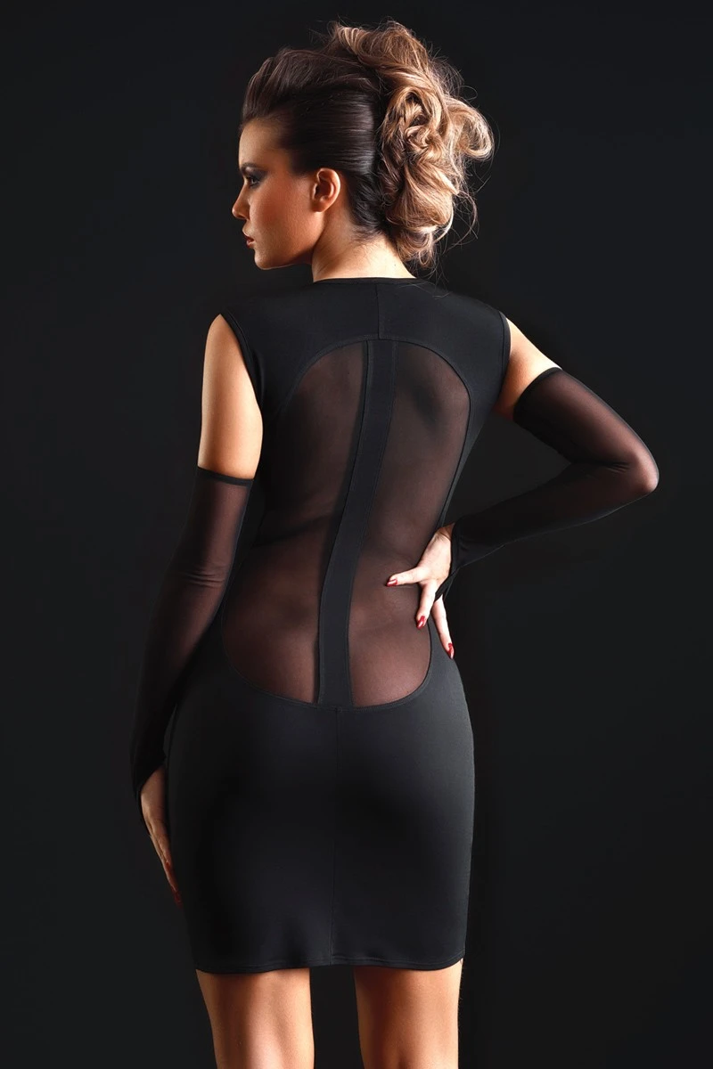 Slip into this enticing Party Mini Dress 100% Made in France, flaunt your curves and the world is at your feet! Sexy, unique and refreshingly uncomplicated, you and your partner will love the snug fit as well as the breathtaking transparencies in the back. Make use of our „Complete the Look“ Slider above and style your Bodycon Glamour Dress with matching arm sleeves, thigh high stockings and many other exclusive accessories that we have curated for you.