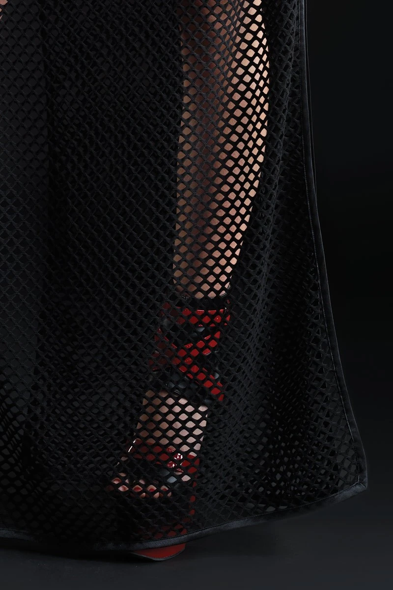 Wear this breathtaking Catanzaro Party Dress with a pair of sexy platform heels for a one of a kind look. The slinky open-meshed fabric is a sight to behold, highlighting your beauty from every angle. Highly slitted on both sides, your legs just look gorgeous. Dressed with or without lingerie, you will love the tantalizing experience of the design as well as the effect it will have on your partner!