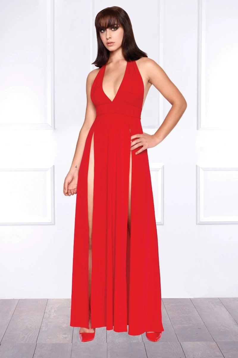 This highly slitted Neckholder Party Dress by Maison Catanzaro is a fiery red eye catcher for empowered women that love to show off their beautiful legs. Move freely and enjoy the flow of the high quality lycra. Thanks to the flexible neckholder design, you can manipulate the depth of your cleavage. This way, the Isabella Dress will always fit your needs and occasion at hand.