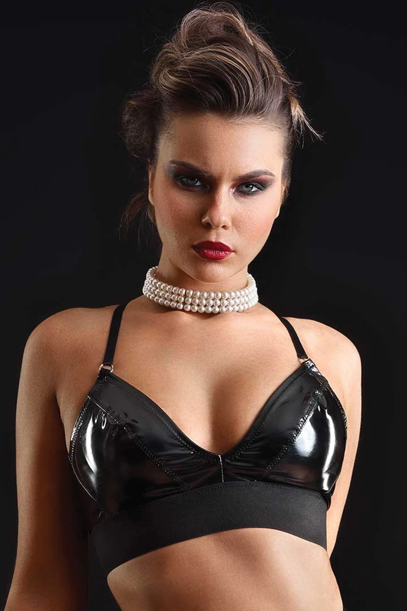- Unique Fetish Fashion Triangle Bra made of shiny black vinyl