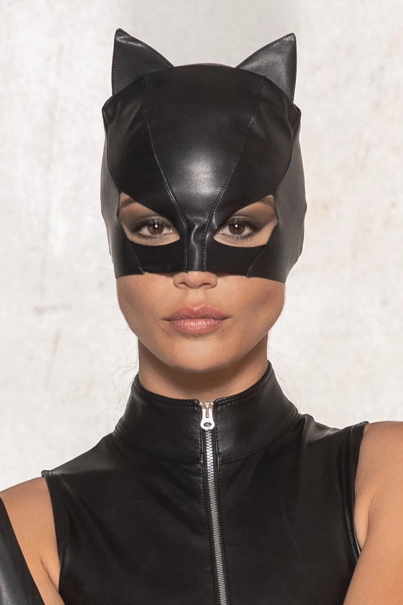 Unleash the irresistible Catwoman in you and wear this sexy wetlook mask whenever you feel kinky and ready to open the gate to previously unknown moments of pleasure. The elastic mask is of an easy fit and just looks amazing with our range of fetish fashion dresses and erotic lingerie. Dare to be and get your Catwoman mask today at Oleanda.com