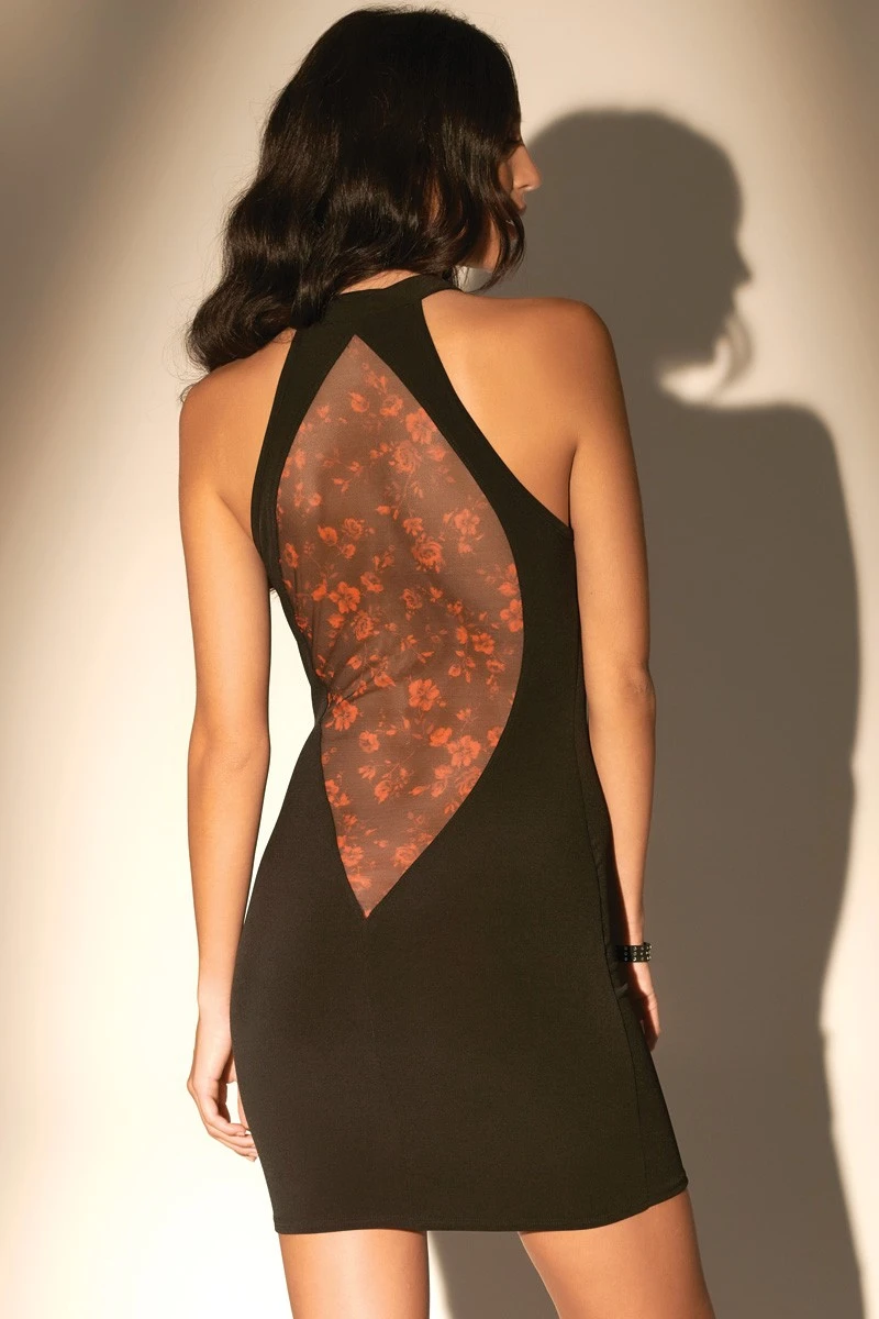 - Sexy Party Dress made of high quality lycra and florally printed mesh