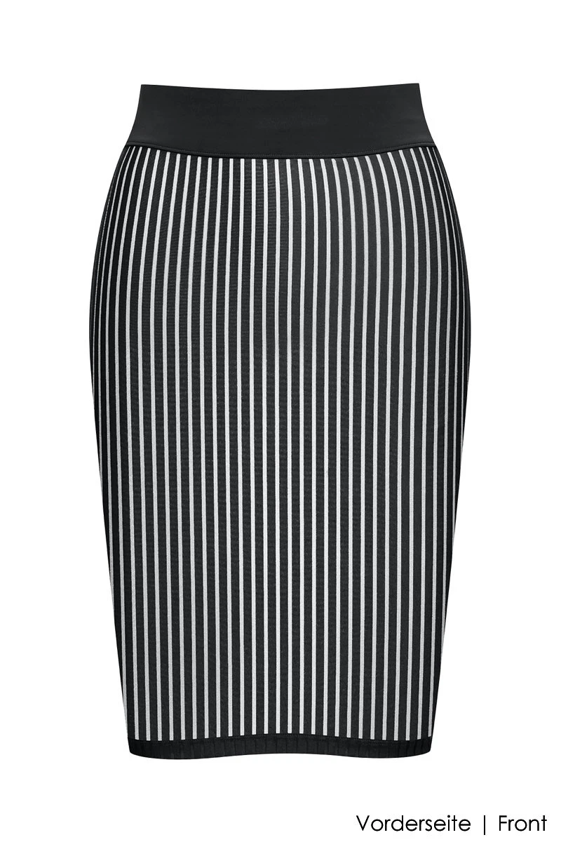 This bum hugging stretch skirt is a joy to wear, celebrating your irresistible curves with every move you make. The semi transparent effect of the vertical striped microfiber is absolutely beautiful and eye catching. Wear this stunning piece in combination with the matching lingerie from our „Complete the look“ Slider and embrace your femininity.
