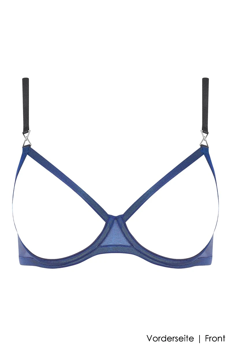 - Hypnotizing Open/Naked bra made of shiny blue metallic tulle