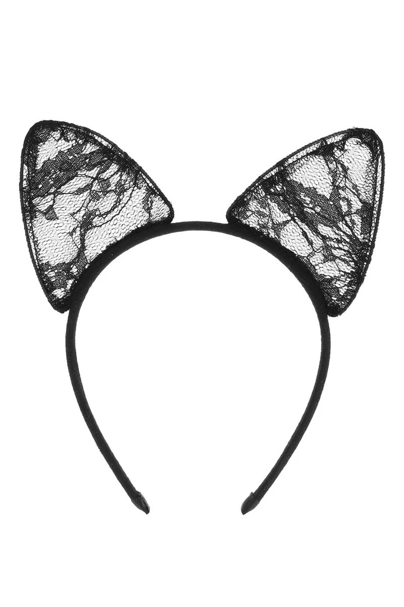 - Adorable Cat Ear Head Band made of finest black lace and satin