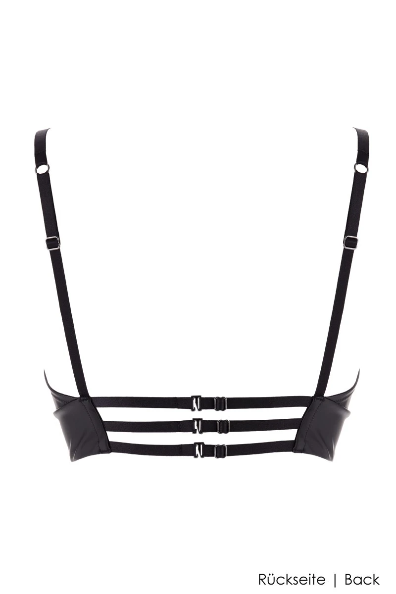 This gorgeous wetlook Bralette with decorative O-Ring detail is wireless and fully adjustable in the back. Embrace this modern shape and wear this extra comfortable bra with your favourite outfits or in combination with all the other tentatilizing designs of the Chambre Noire Line!