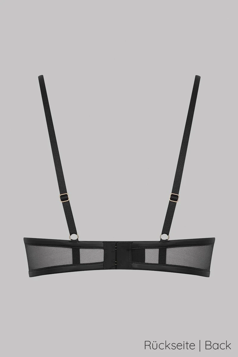Are you ready for a bra that is going to make your next passionate encounter even more enjoyable!? For all women that love extravagant, ultra sexy and sophisticated lingerie, this gorgeous wetlook bra in a cupless design is just a few clicks away! Inspired by the enticing universe of fetish and BDSM, a shiny golden O Ring detail is crowning the center front. Make you dream set complete and be inspired by the matching lingerie options and accessories available to you in the „Complete the Look“ slider above.