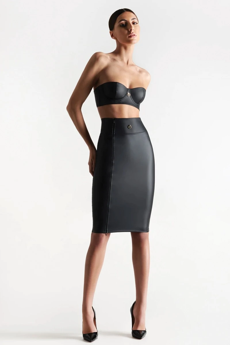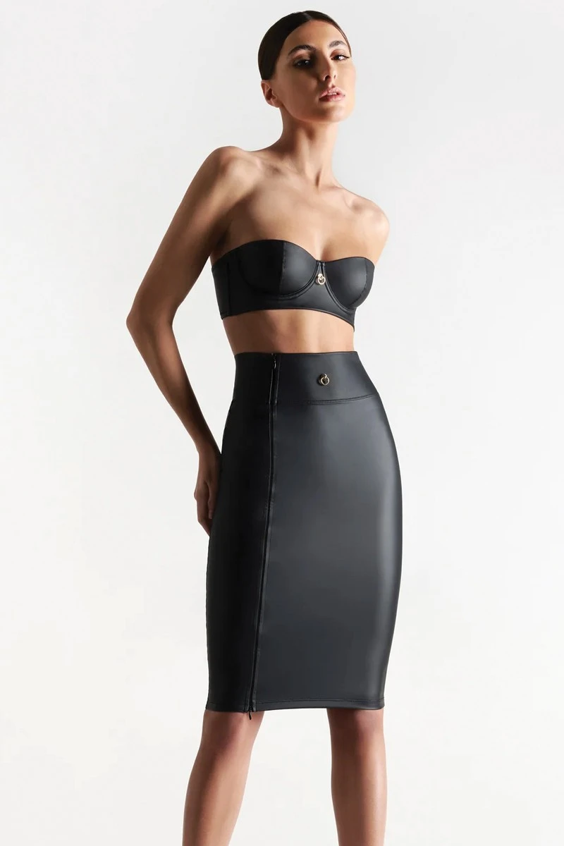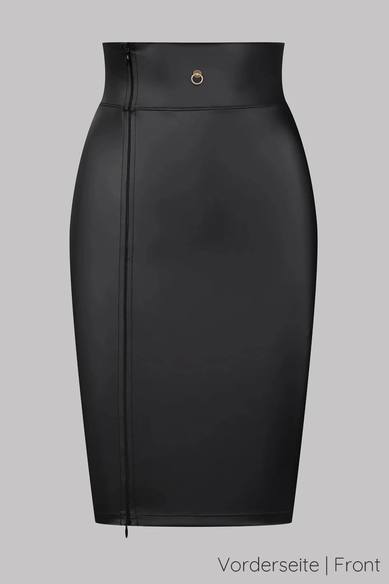 - Fetisch inspired Pencil skirt with a shiny golden O Ring detail