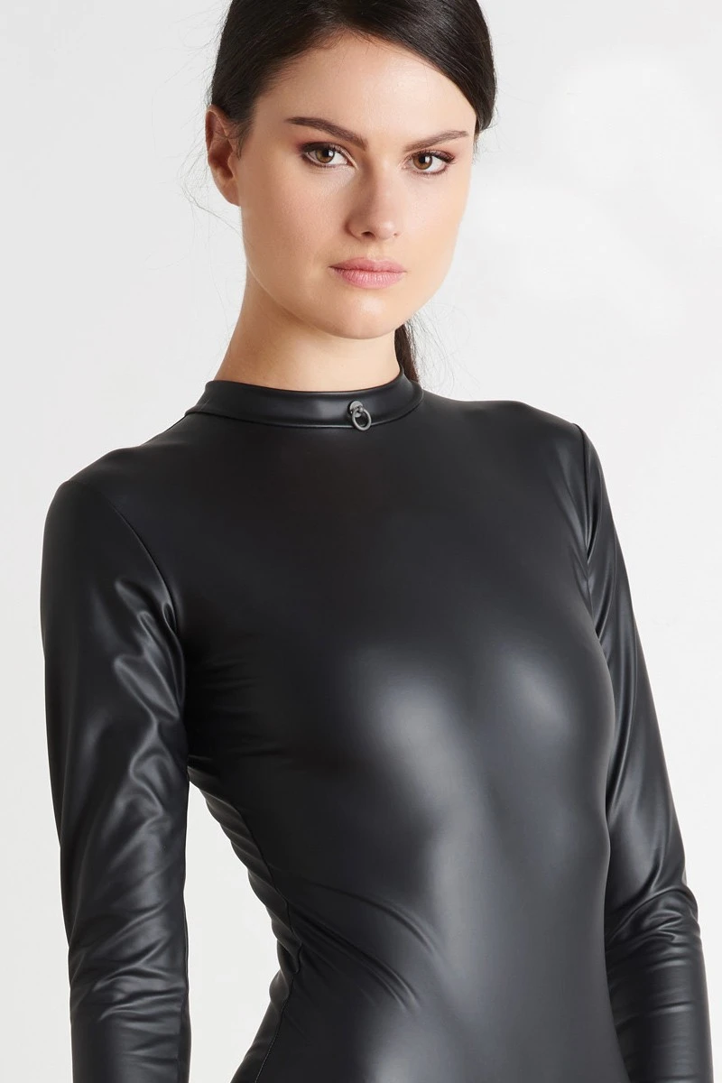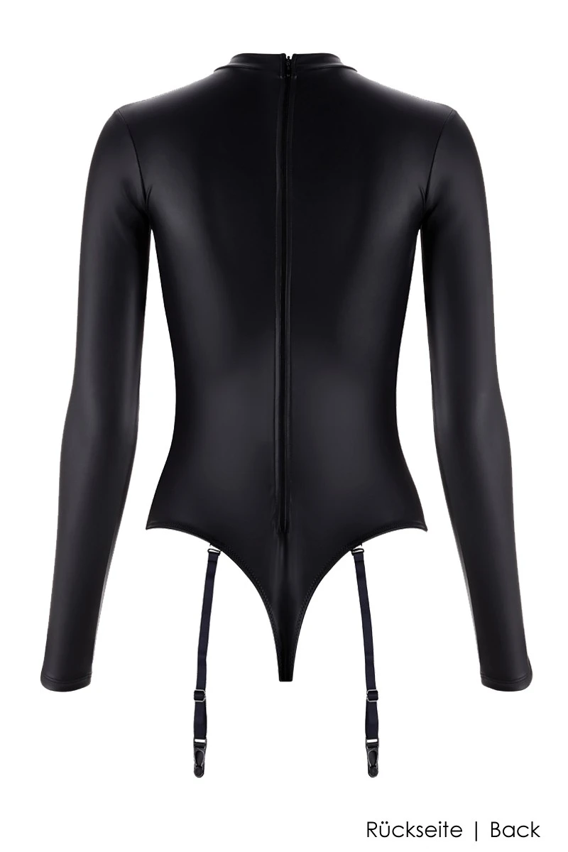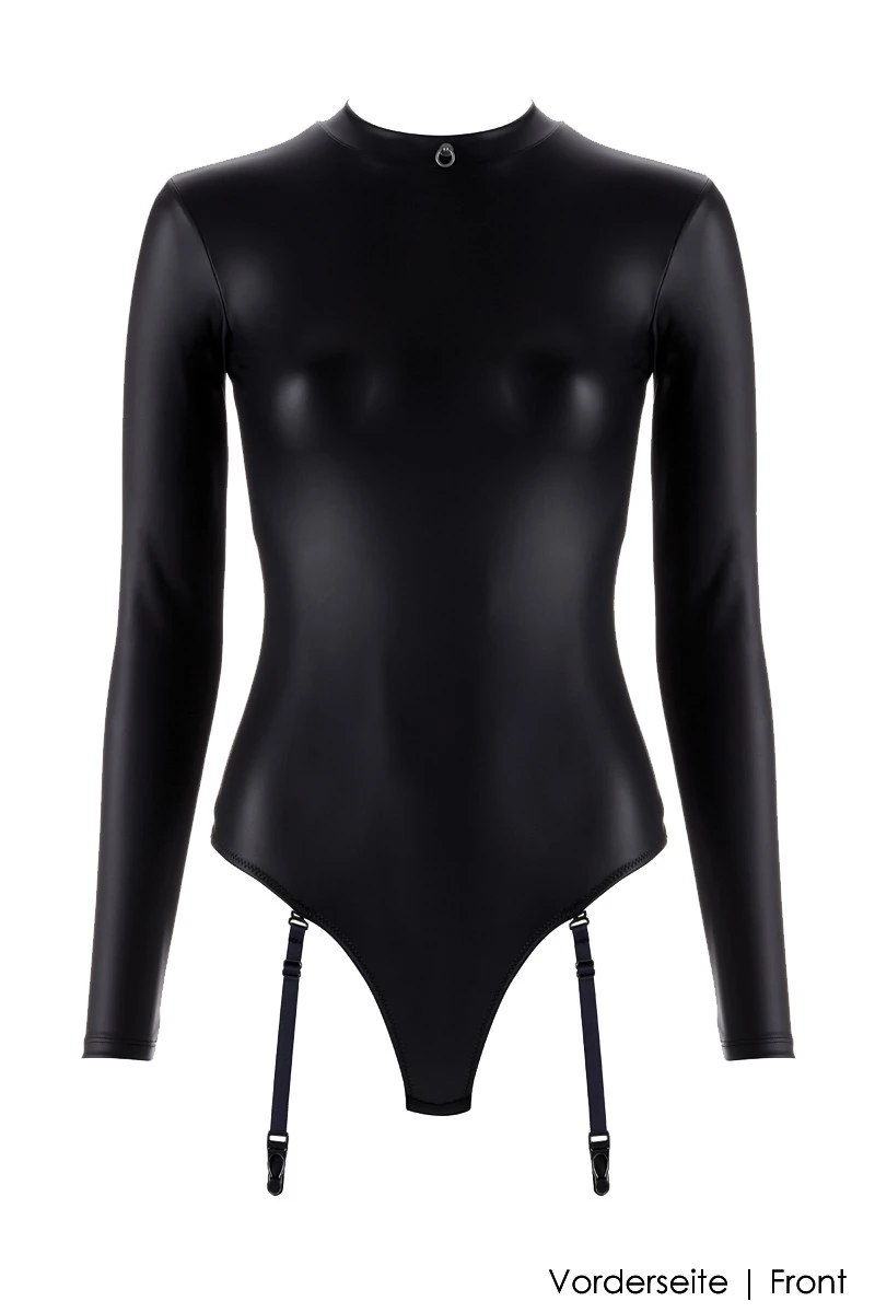This gorgeous Wetlook Thong Body with 4 detachable straps is an exotic pleasure for you and your partner. The high quality Wetlook fabric is elastic and fits perfectly onto your body. A sexy O-Ring Hardware detail is placed in the center front of the elegant stand up collar. Thanks to the zipper in the center back you will dress and undress with ease. Complete this sexy piece of erotic lingerie with a set of our finest thigh high stockings and be the queen of the night!