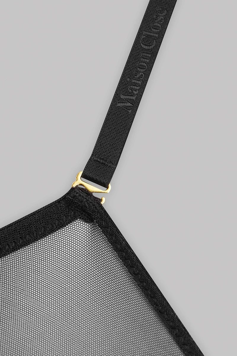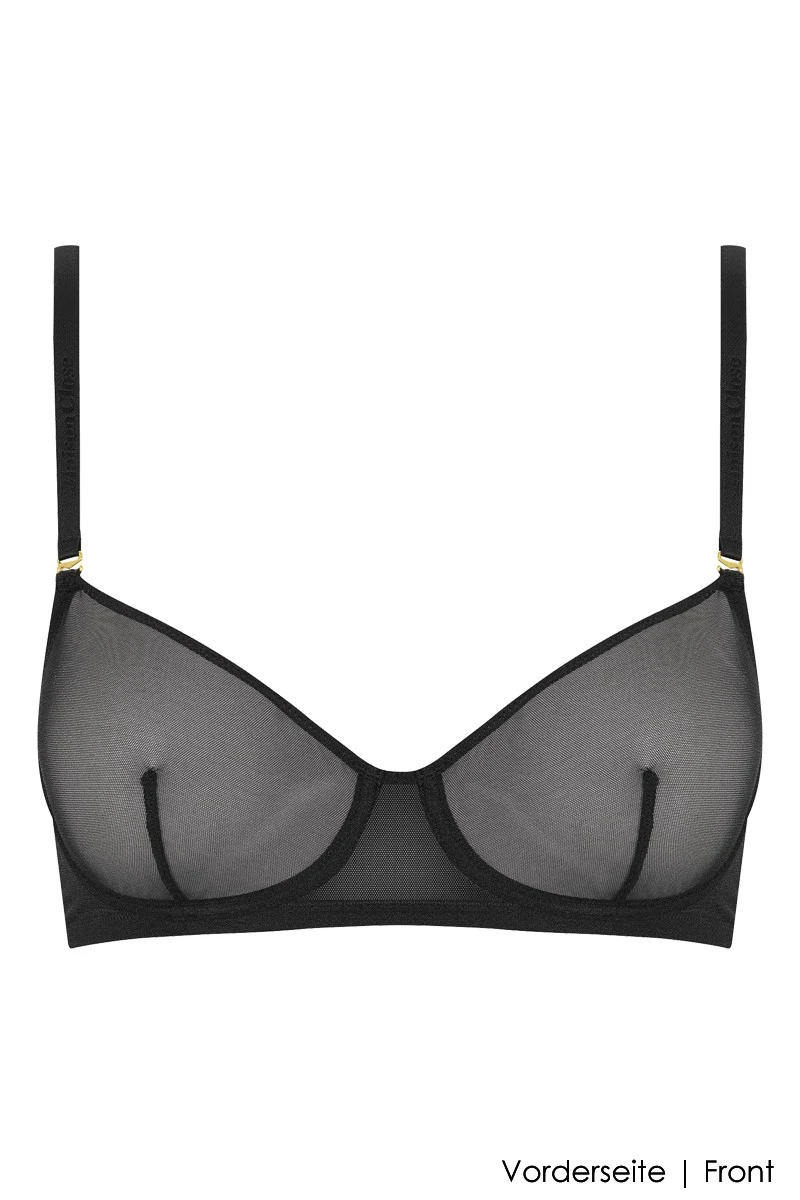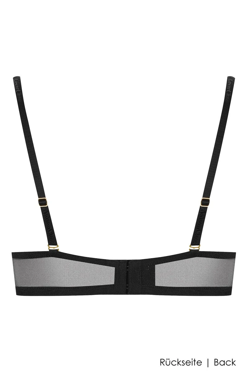 This sheer mesh balcony bra of the black Corps a Corps line is a multi-talented lingerie eye-catcher with the DNA of a timeless classic. Thanks to its sexy see-through design and the modern construction of the bra, it will serve you as comfortable daily use lingerie as well as stunning erotic lingerie that will make you look your very best when you want it the most. Light and airy, the breathable microtulle gently touches your carasses your body, shaping a naturally beautiful decolleté. Be inspired by our “Complete the Look” slider and wear this black bra with other black styles of the same line or dare a mix with the hynotizing neon colours that are also available in our store. Embrace the mix & match options…even the shoulderstraps can be exchanged for the ones of a different colored bra of the same line!