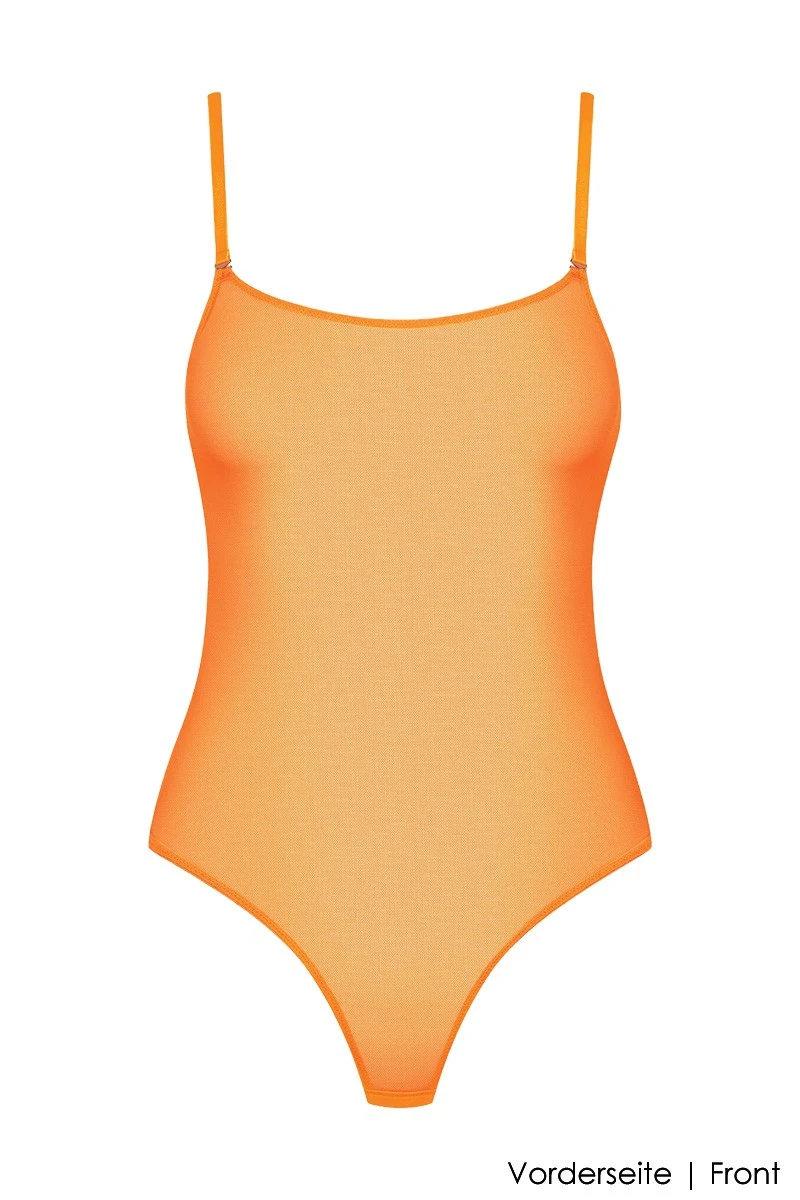 The spirit of the 80’s is back with this neon orange String Bodysuit! This stunning piece is made of a body hugging soft mesh, that will embrace your femininity in the most alluring way. It can be worn with any stylish outfit or as a part of an erotic lingerie set! It’s revealing nature, will leave very little to the imagination. As well, this item has a practical opening in between the legs for easy handling. Don’t forget that you can create a stunning set with the help of our “Complete the Look” slider.