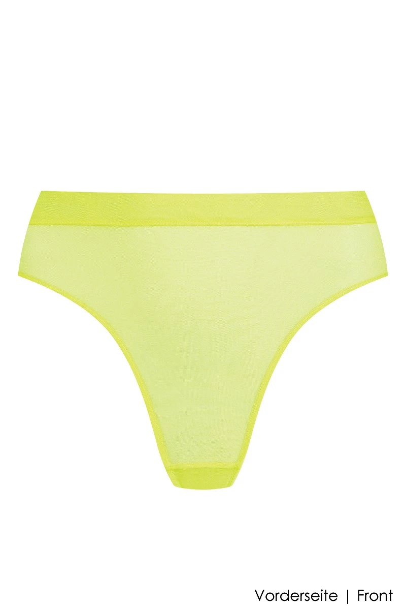 You love the undeniable allure of this eye-catching 80ies inspired high waist thong in a bright neon yellow!? Who wouldn´t! This gorgeous piece is made of a soft, sheer and breathable Mesh that feels like a second skin. Wear it all kinds of fashion outfits, use it for your yoga work out or bedazzle your partner in the boudoir. Embrace the allure of this highly feminine cut, and don’t forget to mix and match it with any bra or suspender (you can chose from various neon colors) from the same line. Check out the “Complete the Look” slider and find the perfect pieces for a unique lingerie experience.