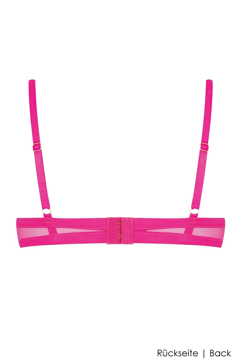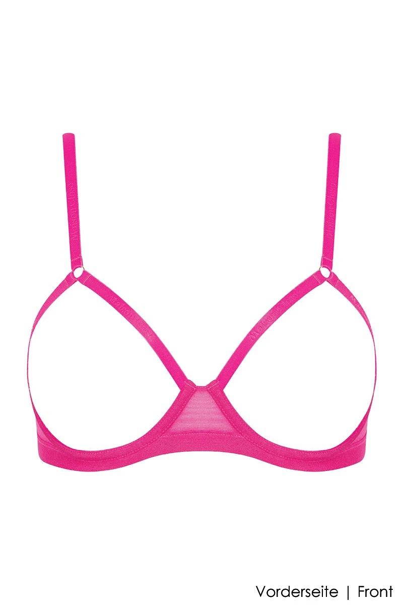 Bring life into your bedroom with this super sexy open bra in neon pink! Inspired by 80’s fashion, this naughty bra is everything you are looking for to spice up your love life. It is the perfect style for erotic play, thanks to its revealing nature. It has a very easy and elastic fit. Create the perfect Boudoir Set by combining it with any string, high waist slip, culotte or suspender from the same Corps a Corps Neon line by Maison Close, regardless of color! Let yourself be inspired by the “Complete the Look” slider, it will guide you to make the right choice.