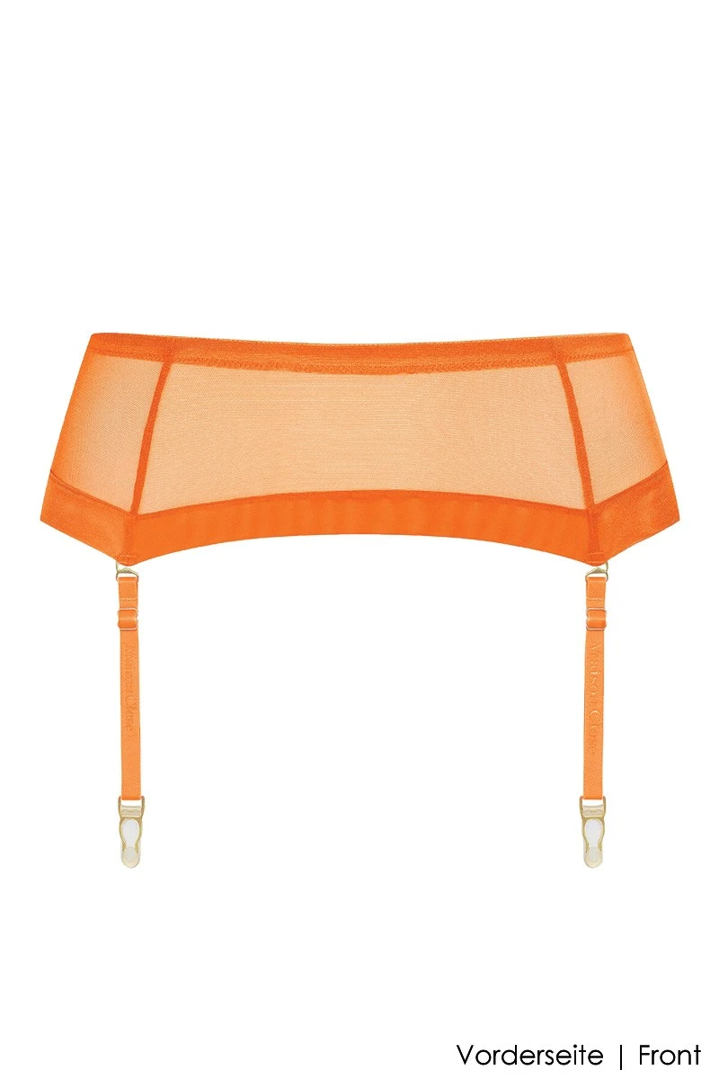 The key to a perfect neon lingerie set lies here, with this stunning orange neon Suspender! Made of soft sheer Mesh, with 4 detachable and adjustable Straps that will fit your body like a second skin. The fasteners and adjusters in gold bring a little extra light into this piece. Don’t forget to check our “Complete the Look” slider so you can see how you can mix and match this lovely item with any bra, bottom and stockings from the same Corps a Corps line by Maison Close. The sky is the limit when it come to expressing your personality, through sexy lingerie.