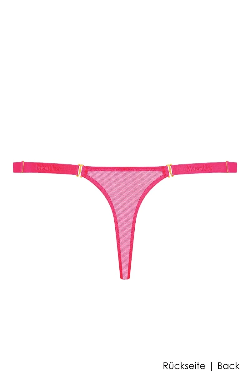 Inspired by the retro chick of the 80’s, this sexy thong in neon pink is a must-have! Perfect for daily wear or as part of an erotic lingerie set. It is made of sheer mesh that is soft and breathable. It has adjustable side straps. These straps are also removable, for easy access. Combine this sexy Thong with any Bra from the same Corps a Corps Neon Line, regardless of color. It’s all about how creative you can get with neon colours!