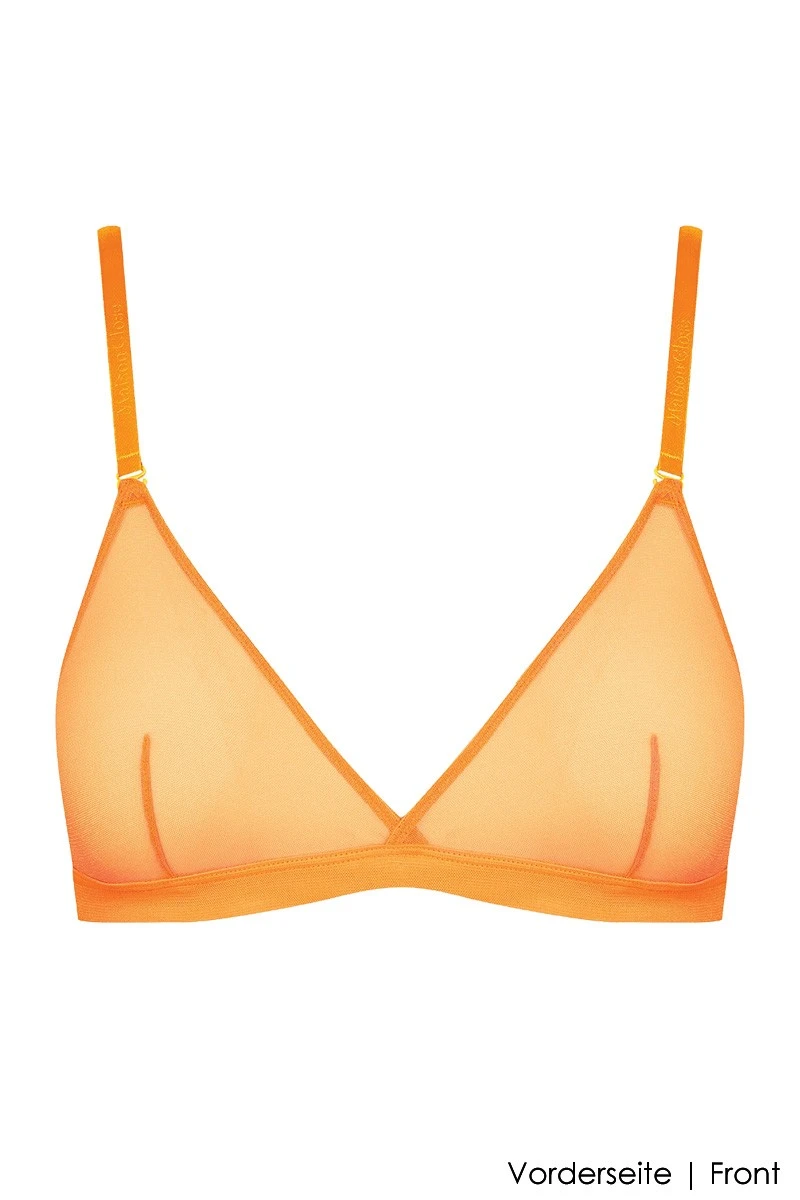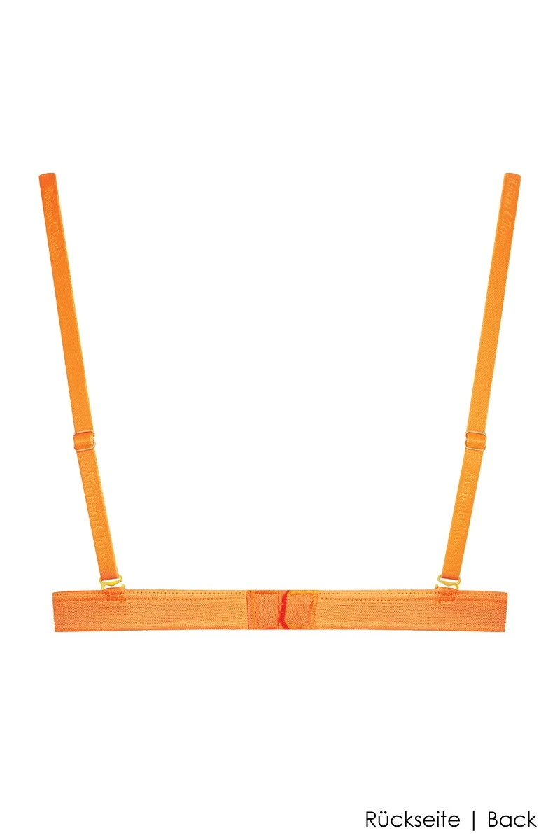 Feel radiant like the sun with a splash of neon orange! Inspired by the 80’s fashion, this lovely transparent triangle bra is everything you need to feel energetic and sexy. It has an easy and elastic fit and what’s best, you can Mix and Match it to any bottom or suspender from the same line, regardless of color. Explore the multiple combinations from the “Complete the Look” slider and have fun creating your perfect look. Remember the sky is the limit!
