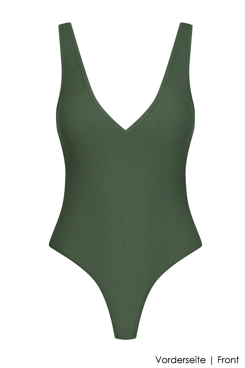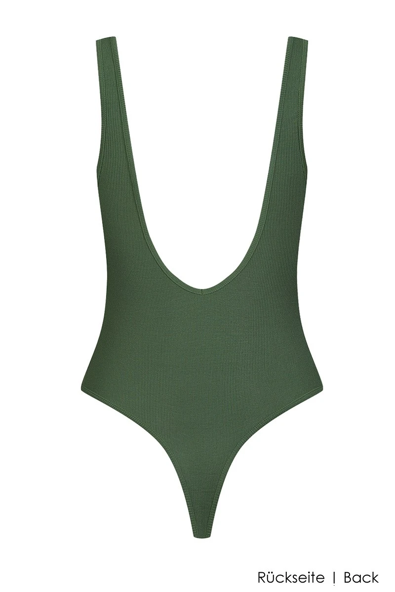 The beautiful Femme Amazone Thong Body is made of ultra soft and body hugging fine rib micromodal, for an unrivaled wearing comfort. Wear it with your hottest outfits from casual Denim to a classic pant suit or enjoy it while doing your yoga and fitness workouts. The alluring minimalist design with a V-shaped cut in the back is featuring an airy lightness that looks super sexy.