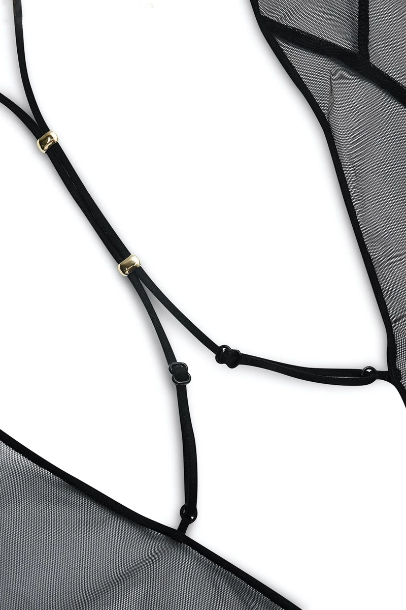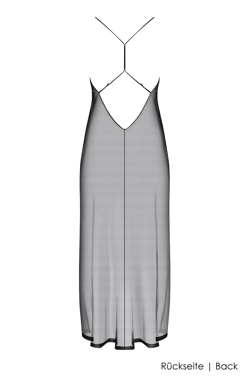 Dressed as sensual nightwear or as erotic lingerie with a set of our finest lingerie, you will love the feel and look of this see through mesh Slip Dress! Slitted on both sides, it is light and elegant. The open back is adorned with a decortive lacing detail. The shoulderstraps can be adjusted to your individual needs for the perfect fit. Enjoy your feminine silhouette in a new way and treat yourself to the gentle touch of this easy fit Mesh Dress designed in France!