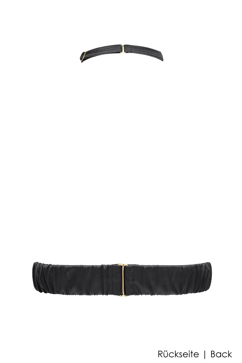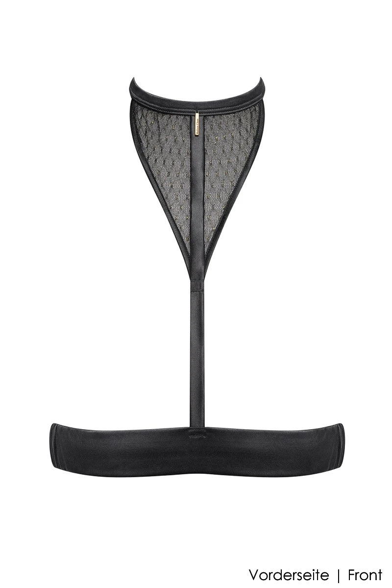 Elegant and completely out of the ordinary, the Body Harness of the „Sage Decision“ line is a sexy detail that is as unexpected as it is hypnotizing! Black shiny satin and finest tulle with golden Lurex highlights are especially beautiful and bring real glamour to the design! Easy in its fit and super comfortable to wear, you can mix and match the Harness to create gorgeous looks. For example in combination with a set of our tentalizing Nipple Pasties and the matching „Sage Decision“ Dress (sold separately), you will look breathtaking and enjoy the full attention of the audience!