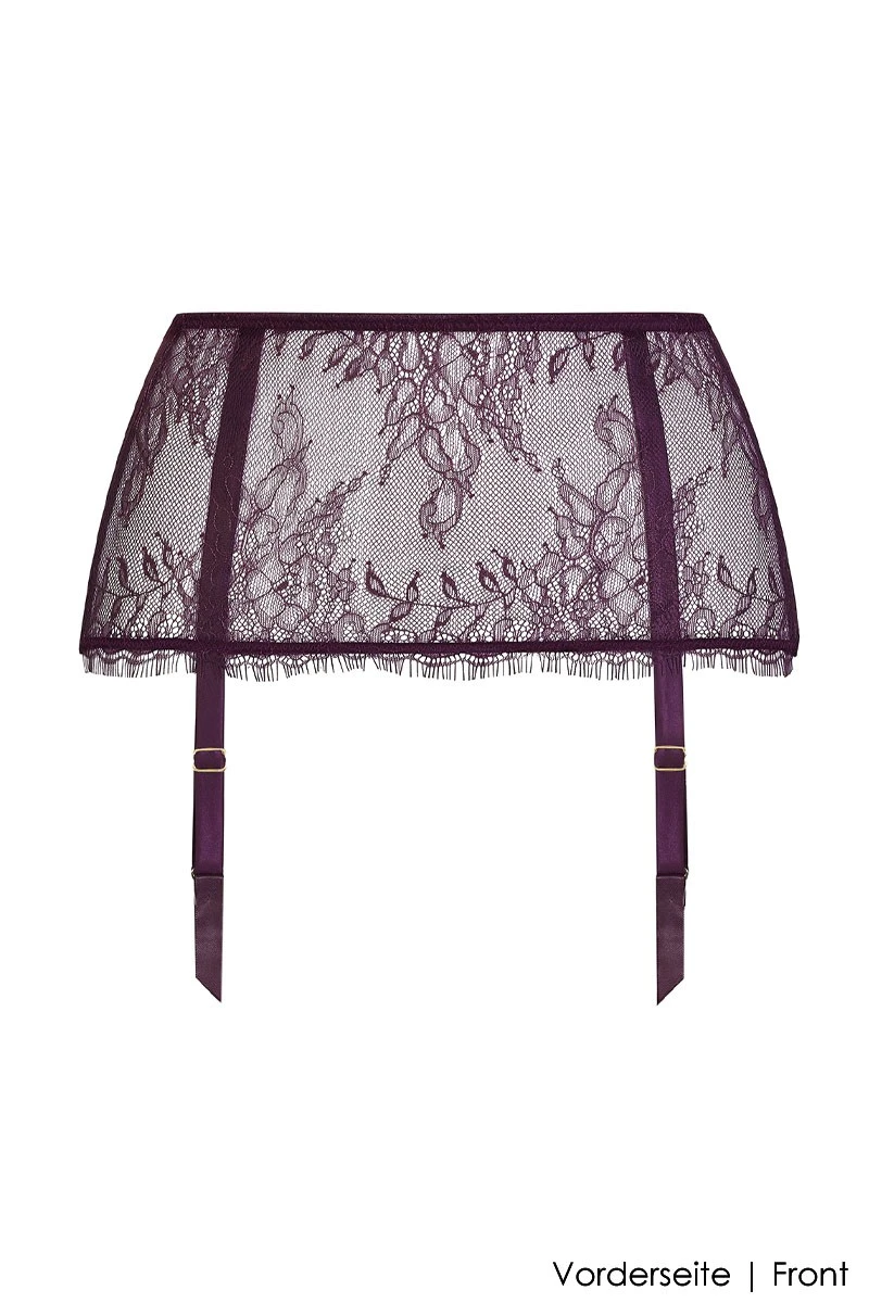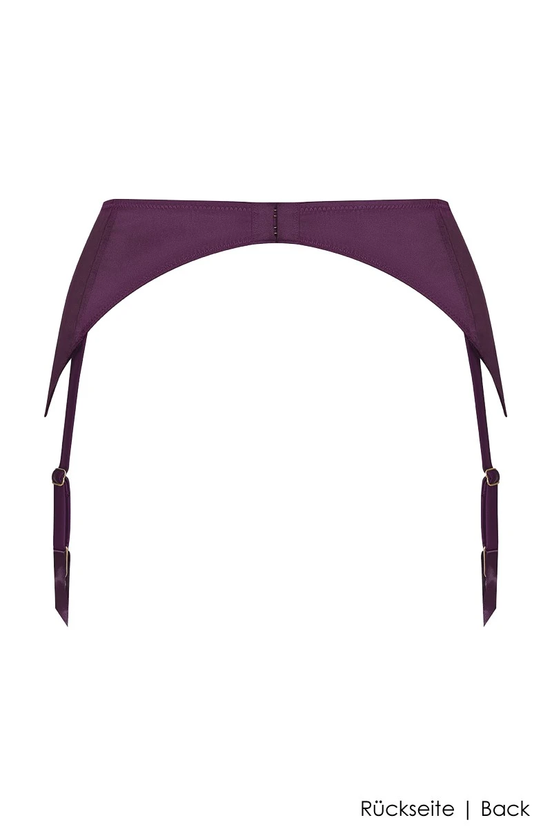 Crown your Lingerie Set with this beautiful 4 strap suspender belt and bring the allure of classic elegance into play. This gorgeous piece is not only keeping your finest nylons in place, its design visually stretches your legs for an irresistible boudoir look. The precious lace and shiny satin in a brilliant violet colour perfectly fit onto your body and create the desired hourglass silhouette. Dressed in combination with the matching bottoms and bras from the „Complete the Look“ slider above, you will come to enjoy one of the most empowering lingerie looks.