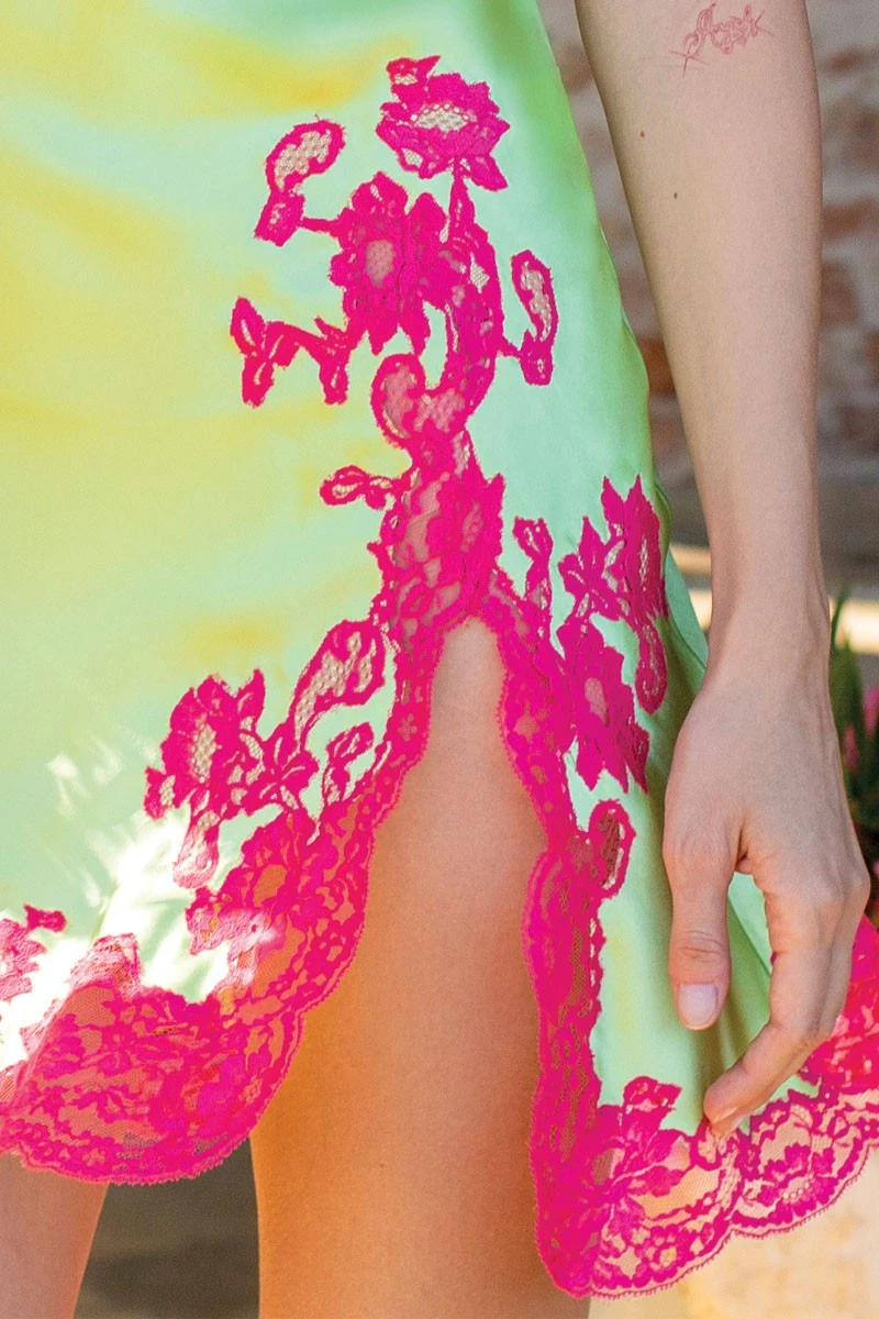 - Luxe Silk Slip Dress with finest lace from the french city of Calais