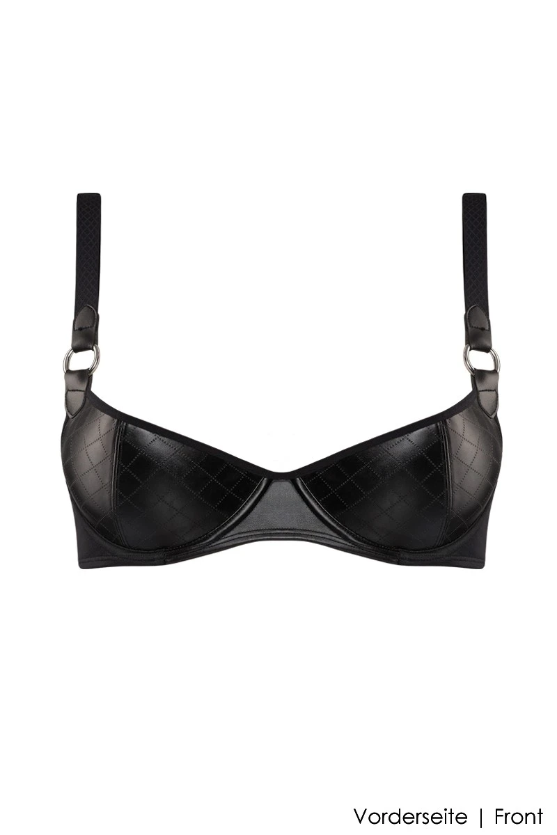 The Femme Fatale is a mysterious and very seductive woman who knows exactly what she wants. This highly electric line was designed with such attention to detail, it will deliver its promise. The Demi Cup Bra is a real eye catcher. Made in a glossy leather look with a subtle diamond pattern, silver color rings and red interior lining. For the perfect Femme Fatale look, we recommend you to combine this Bra with a bottom and suspender from the same Marlies Dekkers line. Ignite the fire within and create memorable moments with sexy lingerie.