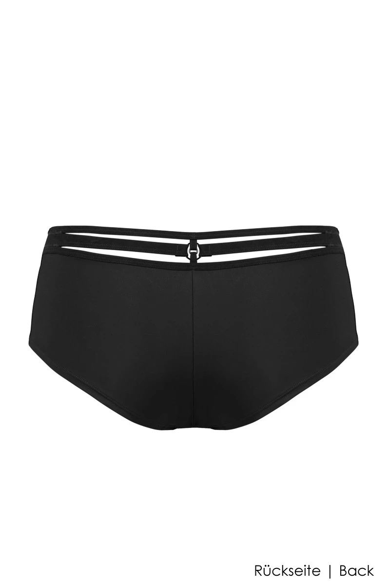 The elastic Brazilian Shorts from the Space Odyssey line by Marlies Dekkers fit perfectly on the body and offer a modern decorative detail on the back. This ring that holds the straps together, is a design piece inspired by Stanley Kubrick’s „2001 : A Space Odyssey“ film. A refined design that highlights your bottom in a flattering way. Uncomplicated and still very special, this lovely Panty Slip is perfect for everyday use. Don’t forget to combine it with the matching Push-up or Balcony Bra from the same Marlies Dekkers line.